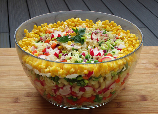 Warzywna sałatka, na bazie makaronu z domowym majonezem.