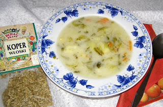 rosół 3 litry, ziemniaki 8 sztuk, przecier ogórkowy 2 opakowania, koper włoski Royal Brand 1 łyżka,