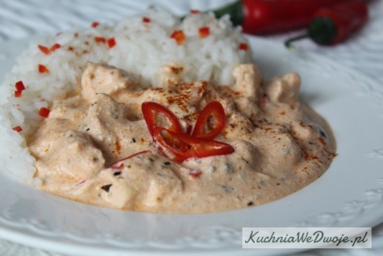 Kurczak w sosie chilli to ostra, szybka potrawa. Kurczaka najlepiej podawać z…