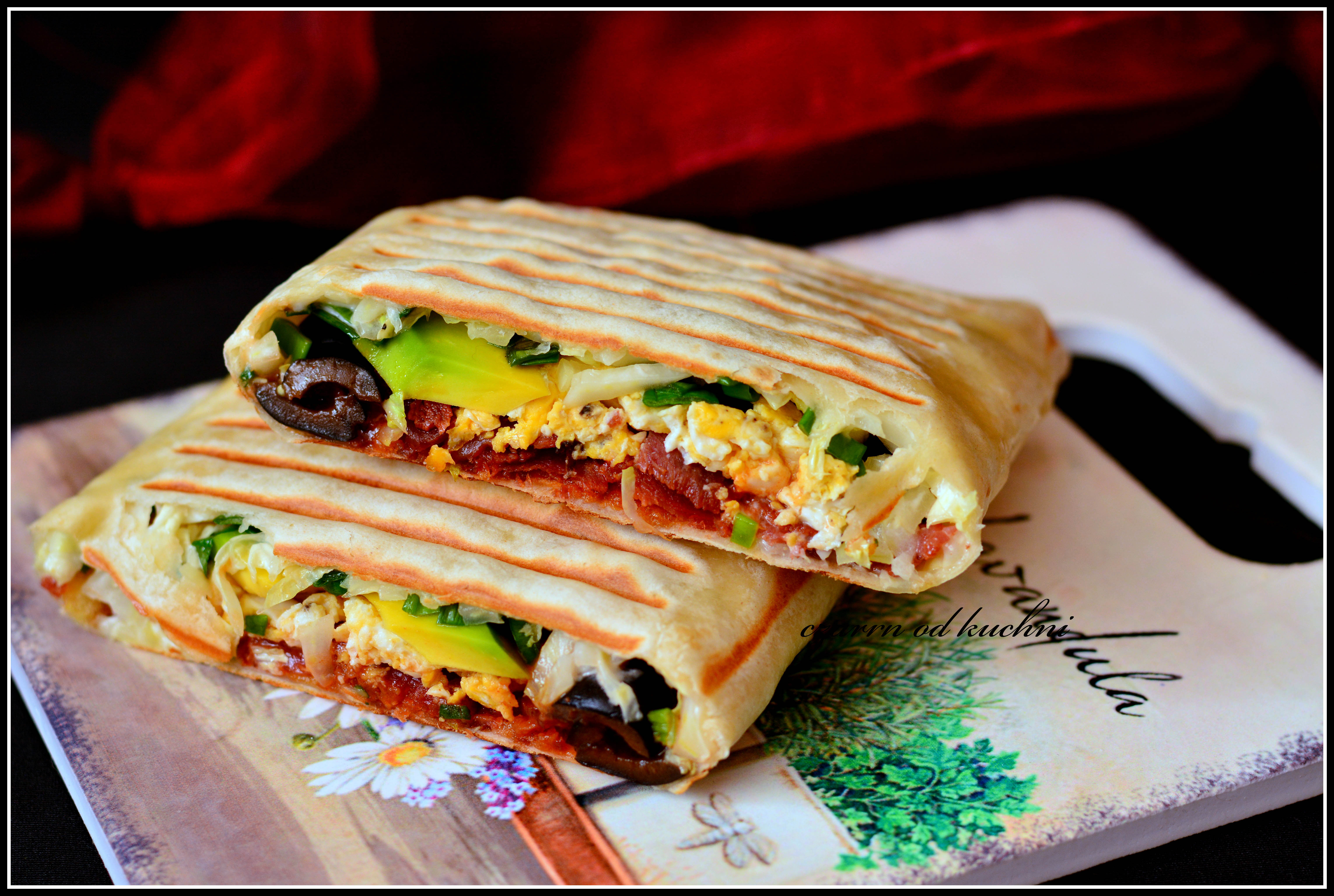 Składniki: 3 tortille 30 cm Fanex 5 jajek 10 dkg wędliny lub…