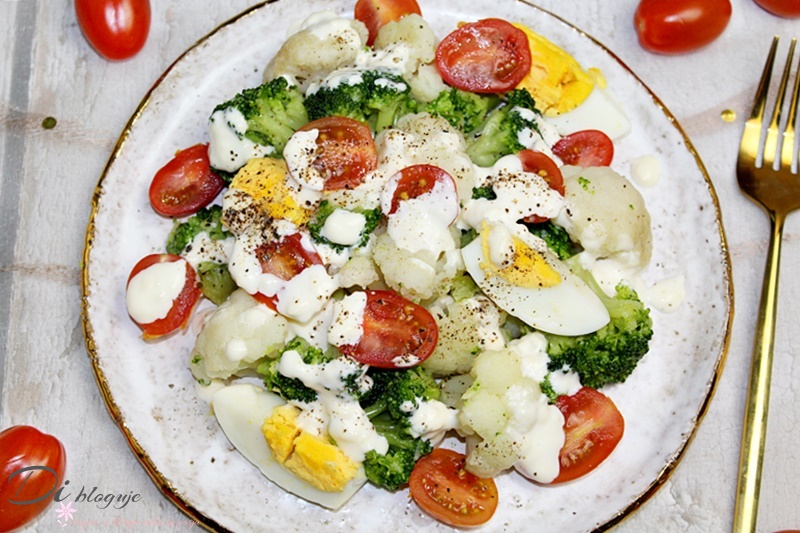 Sałatka brokułowo-kalafiorowa z jajkami i pomidorkami koktajlowymi to ostatnio hit w moim…