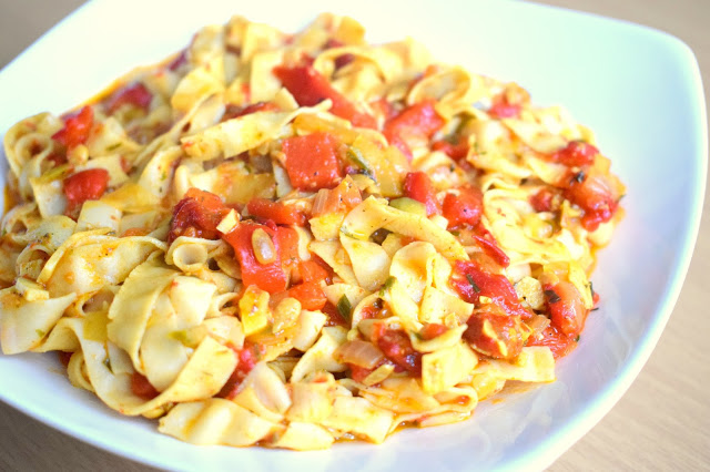 Lubię poznawać nowe smaki, a tym samym próbować nowych produktów. W tym przypadku mam na myśli makaron sojowy. Bardzo mnie zainteresował, a jego smak okazał się bardzo dobry. Do niego przygotowałam sos paprykowy – nie taki gładki, a z kawałkami warzyw. Takie połączenie było przepyszne! Posiłek jest szybki, prosty i