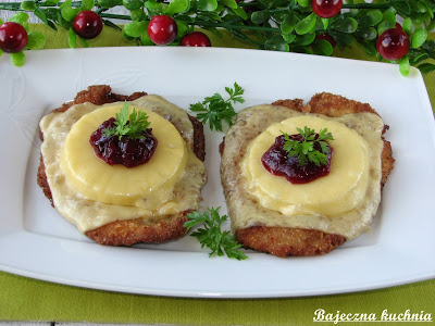 Smaczne i aromatyczne kotlety zapiekane z ananasem ,serem żółtym, podane z konfiturą żurawinową.Ja do tych kotletów bardzo lubię surówkę z dodatkiem żurawiny i obowiązkowo opiekane ziemniaki.