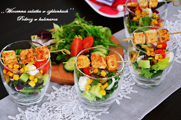 Dziś mam dla Was pomysł na niebanalną sałatkę w szklankach idealną na domowe imprezy. Prosta i efektowna sałatka udekorowana smakowitymi szaszłykami z kurczaka. Dzięki uprzejmości firmy Ole w mojej kuchni powstała pyszna wiosenna sałatka.