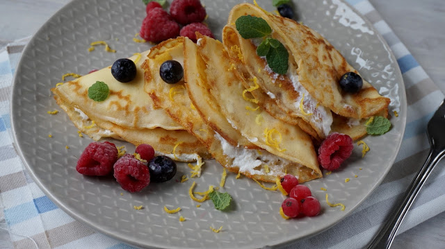 Składniki:(na około 15 sztuk)125 g mąki pszennej15 g cukruszczypta soli2 jajka325 ml mleka100 ml śmietany kremówki 30%nadzienie:200g serka riccottacukier