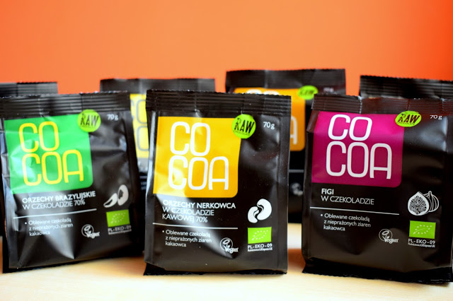 Bakalie oblane surową czekoladą – już sama nazwa brzmi pysznie 😃 Do przygotowania owych produktów wykorzystano różne orzechy, suszone owoce, w tym także banany, które w wersji suszonej zyskują coraz większą rzeszę zwolenników. Jak widać na opakowaniu produkty te są surowe oraz wegańskie. Każdy wariant smakowy jest cudowny, więc tak