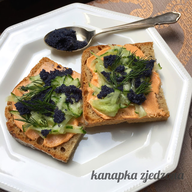 Jestem jedyną w domu wielbicielką pasty rybnej. Inni co najwyżej od biedy zjedzą, a ja naprawdę lubię. Kończy się to trzema dniami obżarstwa i miesiącem przerwy, ale jednak. W ostatnim szale przygotowałam między innymi grzanki z razowego pieczywa z pastą z łososia, tartym świeżym ogórkiem, koprem i kawiorem. Ten ostatni