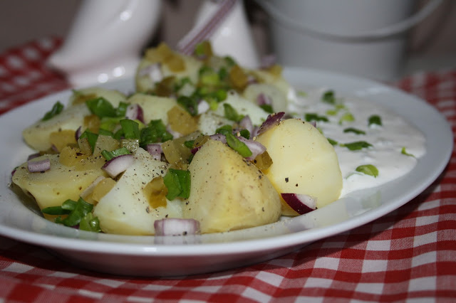 Ależ mnie naszła chęć na sałatkę z ziemniakami, kiszonymi ogórkami, cebulką…Przegonić w myślach jej nie mogłam, musiałam zrobić i zjeść ze smakiem. A Wy lubicie ziemniaczane sałatki?