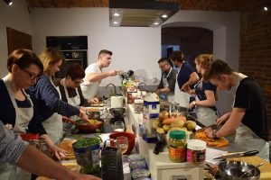 Niedawno miałam okazję uczestniczyć w świetnych warsztatach kulinarnych w Krakowie. Motywem przewodnim była kuchnia indyjska pełna smaku, aromatu i mnóstwa przypraw. Warsztaty odbyły się na ul. Urzędniczej, w studiu Kulinarne Kreacje. Jest to kameralne, lecz bardzo fajnie wykończone wnętrze, z mnóstwem sprzętu. Na takich spotkaniach są zwykle grupy ok. 12-osobowe,