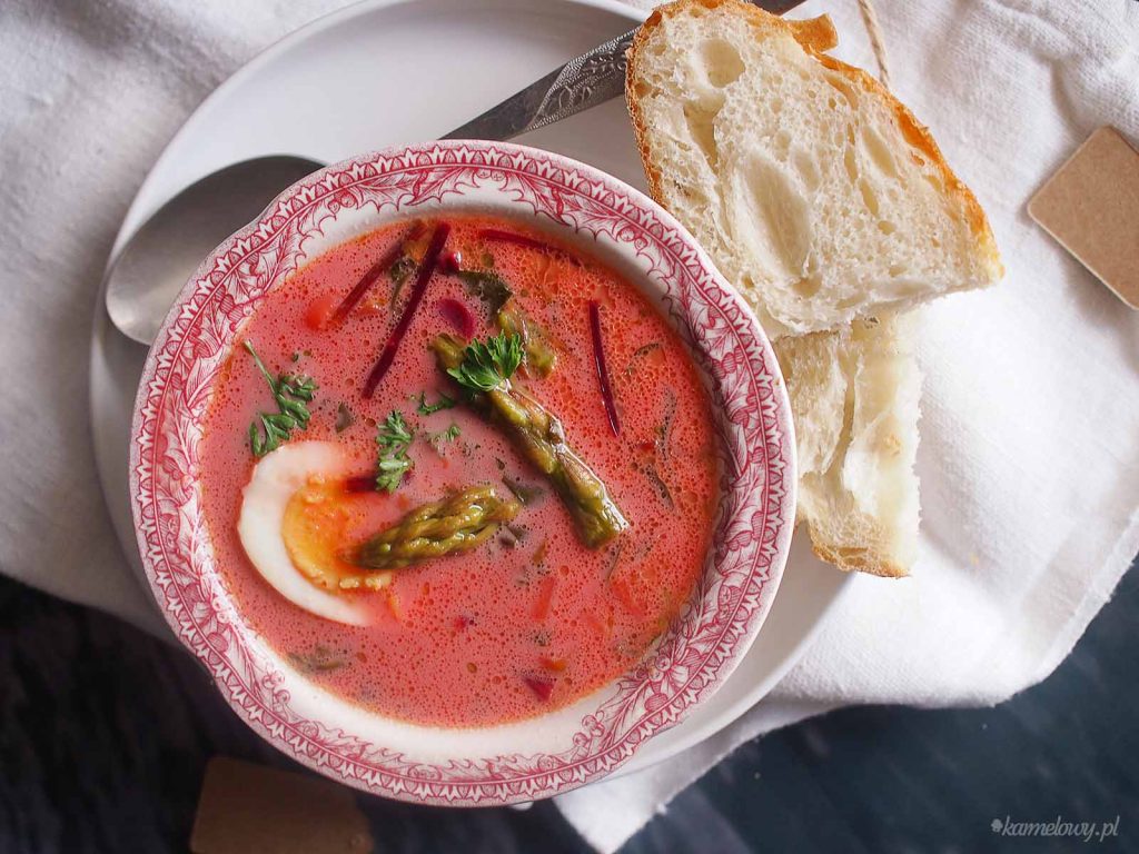Uwielbiam botwinkę! Jest to moja ulubiona zupa od zawsze. Jak tylko botwinka pojawia się w sklepach lub na straganach nie mogę się jej oprzeć. Kupiłam dwa pęczki i postanowiłam wykorzystać ją do mojej ulubionej zupy, a że miałam w lodówce jeszcze szparagi to stwierdziłam, że też je wrzucę.