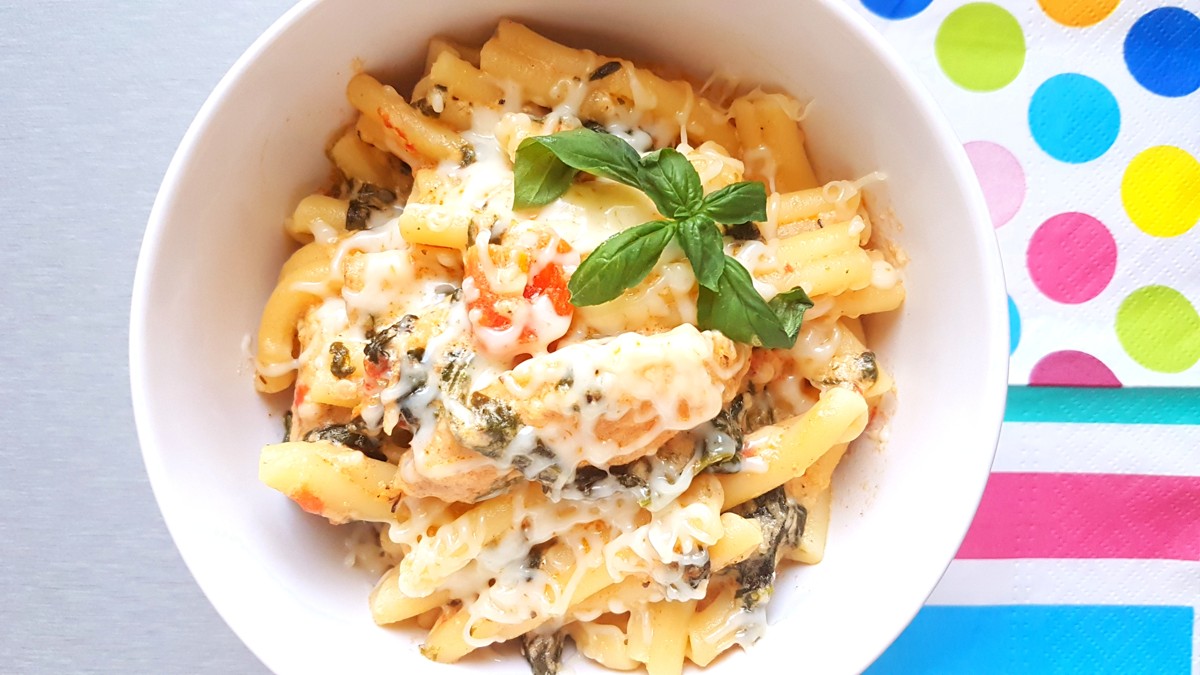 Makaron ze szpinakiem, pomidorami