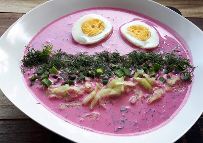 Chłodnik litewski to zupa z botwinki z dodatkiem świeżych ogórków, szczypiorku oraz koperku, podawana na zimno. Może być ona przyrządzana na maślance, kefirze czy zsiadłym mleku. Jest świetna! Nic tak nie gasi pragnienia w upalny dzień jak ten chłodnik 😊A kolor…urzeka.