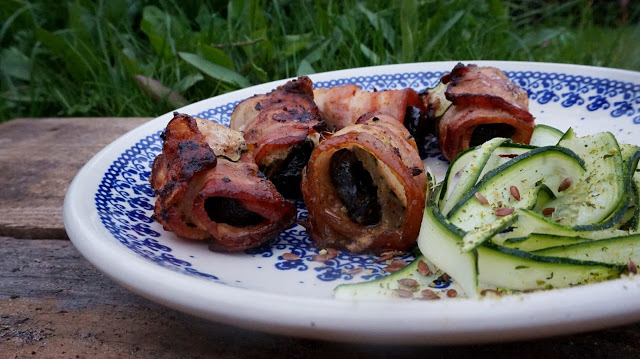 Bardzo proste w przygotowaniu danie grillowe. Połączenie smaku lekko słodkawych śliwek, wyrazistego boczku i ostrej musztardy smakuje nieco jak BBQ.