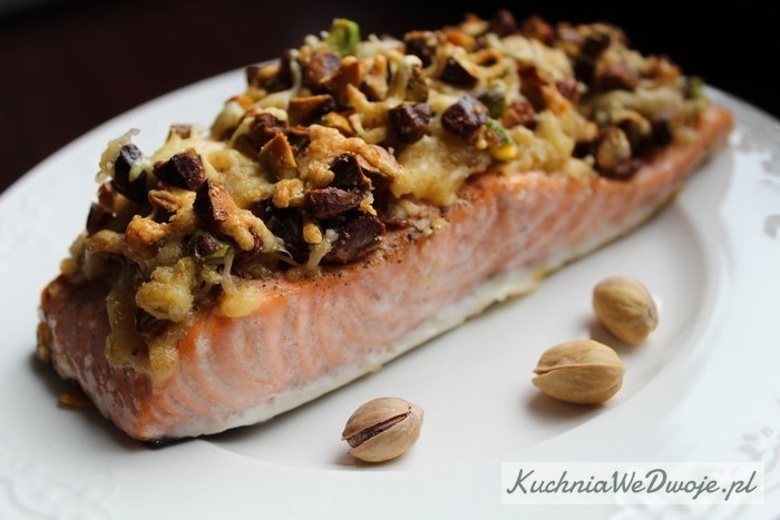 Jest to mój pierwszy przepis na łososia. Szukałam przepisu prostego, ciekawego, a przede wszystkim szybkiego. Wyraźnie czuć smak ryby, a lekko słone pistacje świetnie się z nią komponują. Przyciąga nie tylko zapachem, ale i wyglądem.