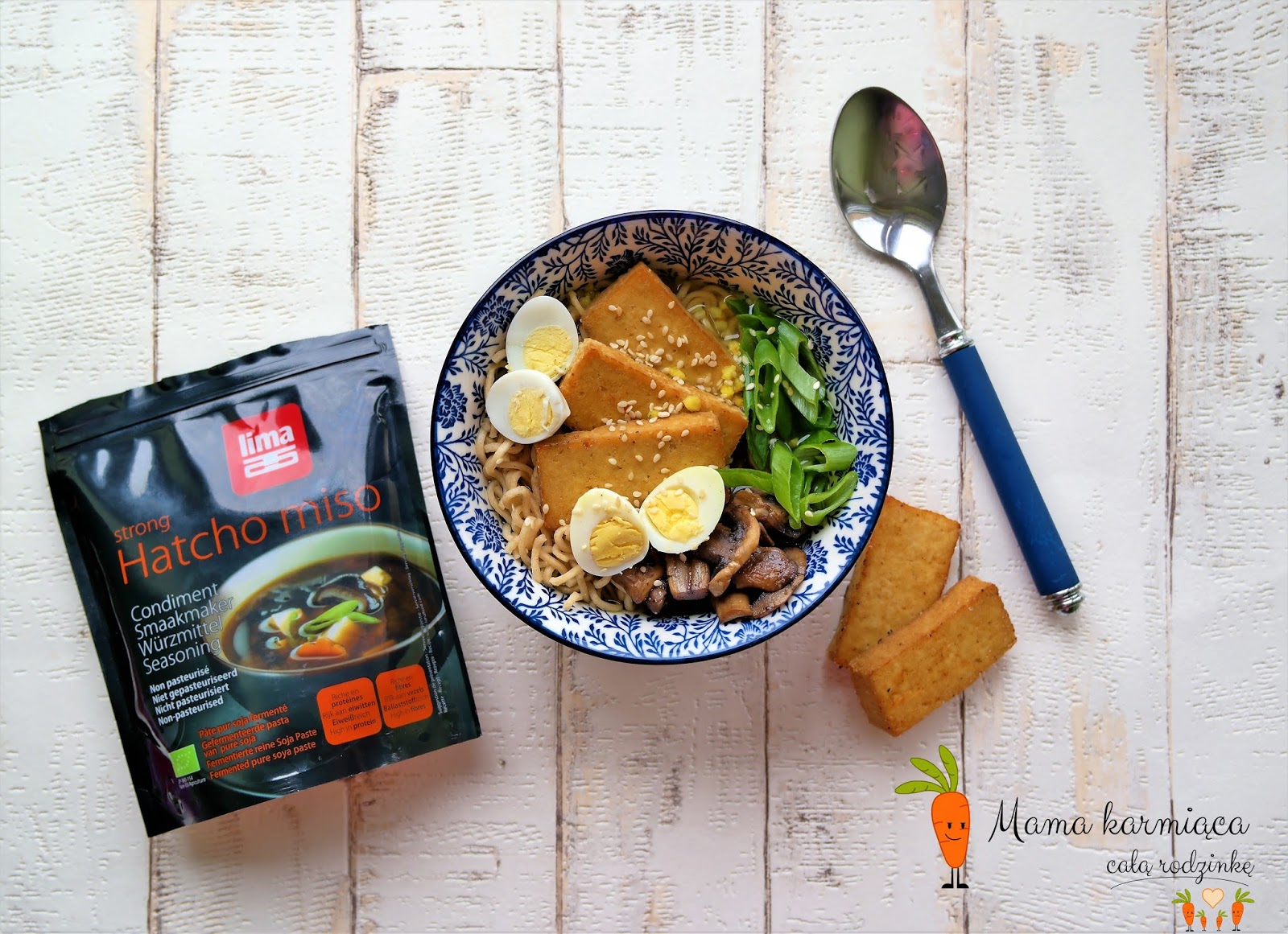 2 szklanki bulionu warzywnego1/2 łyżeczki Miso Hatcho1 kostka makaronu (semolinowego)