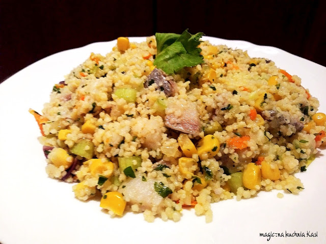 Szybka sałatka z kaszą kuskus z śledziem oraz kukurydzą.Przepis jest naprawę prosty,…