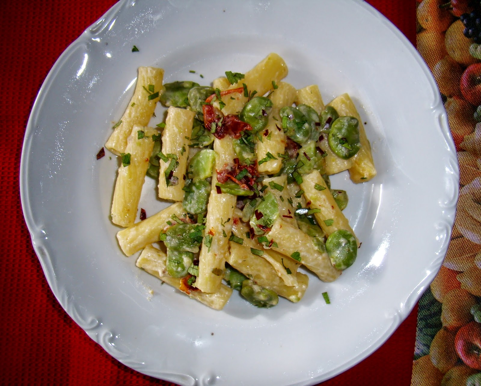 Czekoladowe wstążki makaronowe z karmelizowanym jabłuszkiem