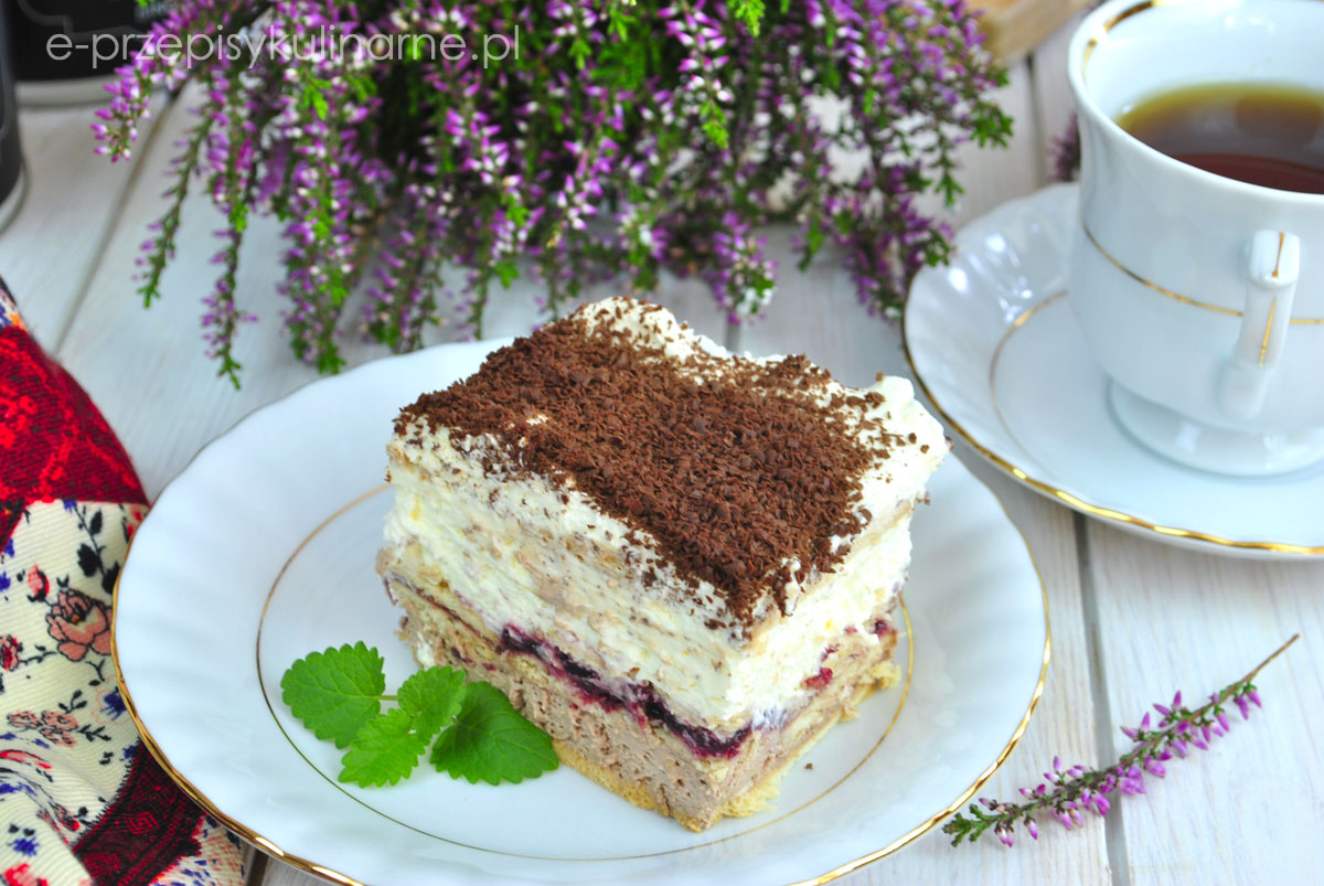 Szybkie ciasto bez pieczenia z kremem z serka mascarpone i bitej śmietany,…