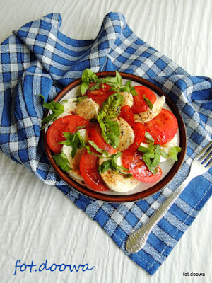 Sałatka caprese, klasyk kuchni włoskiej z okolic Kampanii.Sałatka ma odzwierciedlać flagę Włoch.Jest…