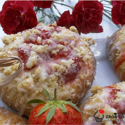 Pyszne drożdżówki z truskawkami i kruszonką powstały wczoraj w potrzebie chwili. Nagła ochota na drożdżówki, więc wystarczyła godzina (no może ciut więcej) i już zajadałam się smaczną, jeszcze ciepłą drożdżówką.