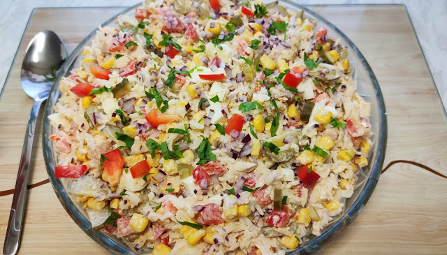 Sałatka ryżowa z wędzonym kurczakiem