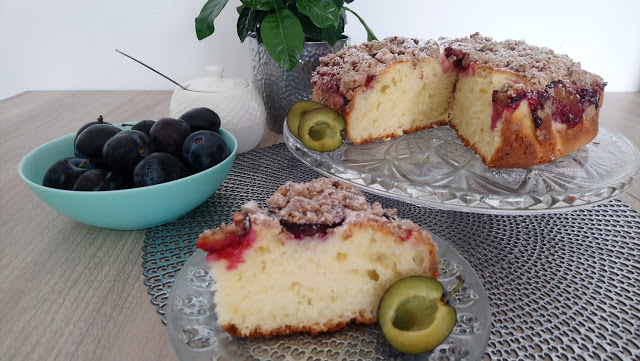 Jogurtowe ciasto ze śliwkami i cynamonową kruszonką