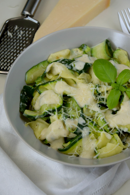 Makaron cukiniowy z sosem serowym