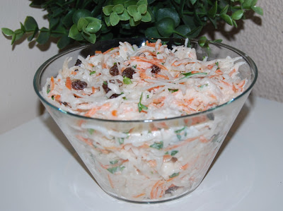 Można ją przygotować z majonezem, śmietaną lub jogurtem naturalnym. Rodzynki można zamienić na żurawinę. W zakładce SURÓWKI znajdziecie przepisy i pomysły na inne surówki do obiadu czy też do kanapek.