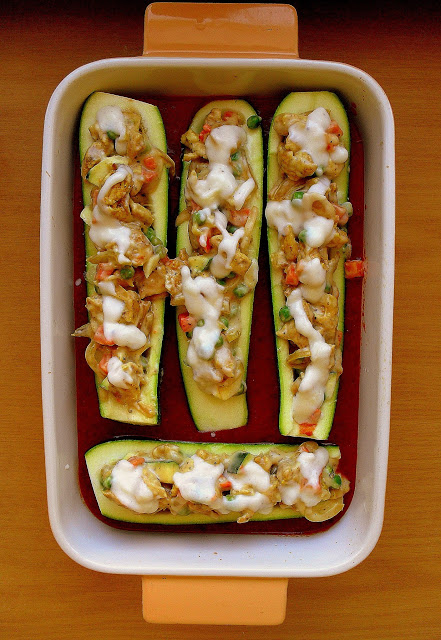Na moim blogu znajdziecie mnóstwo przepisów na faszerowane warzywa, bo jest to jedna z moich ulubionych propozycji obiadowych. Bardzo lubię za każdym razem wymyślać nowe nadzienie, dzięki temu tak przygotowane warzywa nigdy mi się nie znudzą. Dziś proste i przepyszne faszerowane cukinie z kurczakiem w kremowym sosie beszamelowym. Są pyszne