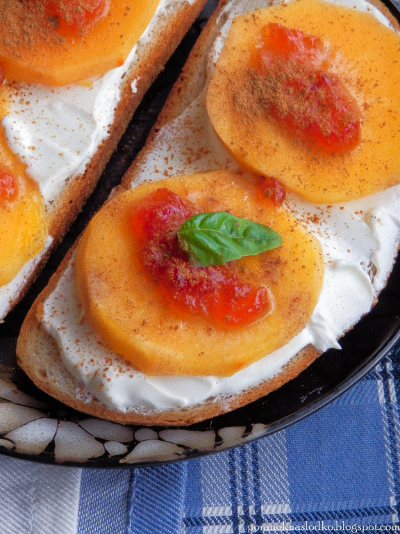 Grzanki z bezglutenowego chleba dworskiego* z bieluchem, persymoną, dżemem z granatów, bazylią…