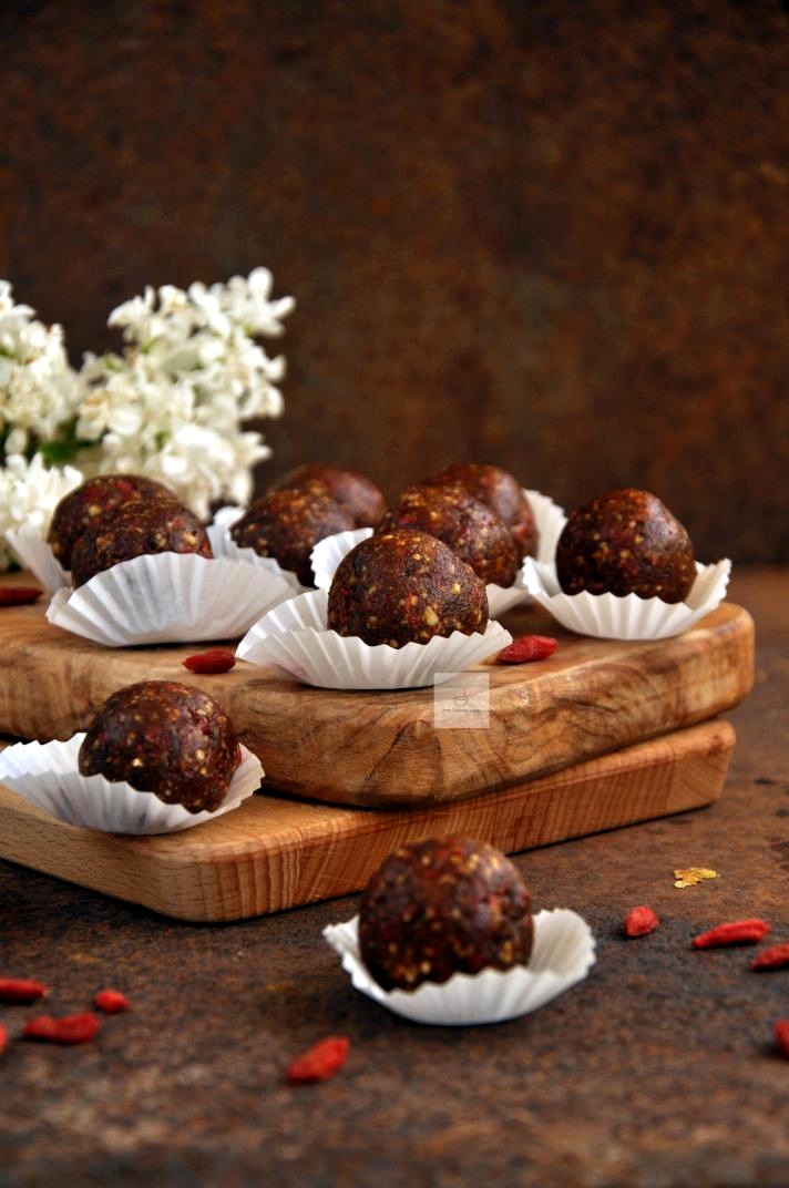 Kolejne proste i zdrowe słodycze czyli kulki z daktyli, orzechów i jagód goji.