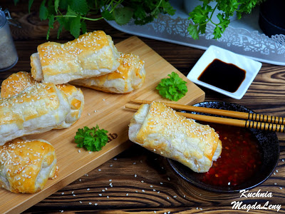 Przekąski a’la sajgonki w rozmiarze XXL i wersji wegetariańskiej… z ciasta francuskiego,…