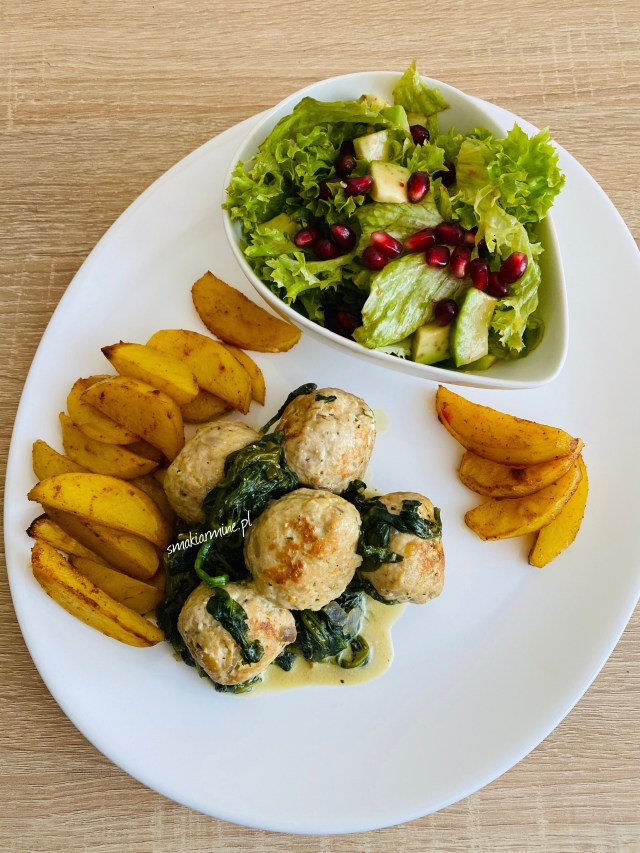 Klopsiki z mozarellą duszone w sosie śmietanowym ze szpinakiem