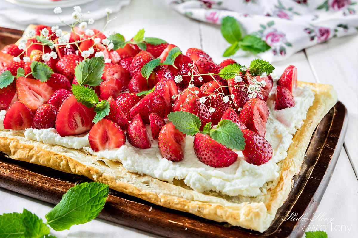 Szybka i prosta tarta na cieście francuskim z przepysznym kremem kokosowym, mnóstwem świeżych truskawek i pachnącymi listkami mięty – to doskonały deser na rozpoczęcie sezonu truskawkowego!😍 Już niewielki kawałek takiej tarty to czysta rozkosz dla podniebienia, a oderwać się od niej to prawdziwa sztuka 😉Połączenie kruchego ciasta francuskiego z
