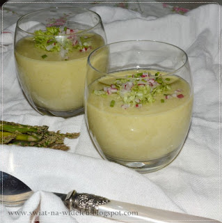 Sezon na szparagi w pełni. Na straganach pojawiły się polskie młode szparagi, których nawet obierać nie trzeba! Esencja smaku jest właśnie w tych młodych, chudziutkich szparagach. Jeśli je lubicie pokochacie ten chłodnik. Jest gęsty i kremowy.