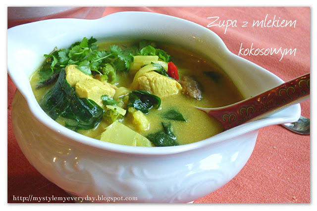 Nie będzie to typowa zupa tajska tylko raczej z tych „zerknij co masz w lodówce”. Myślę, że ten przepis zadowoli szczególnie tych co nie mają w swojej kuchni wachlarza orientalnych przypraw a mają ochotę na odmianę.