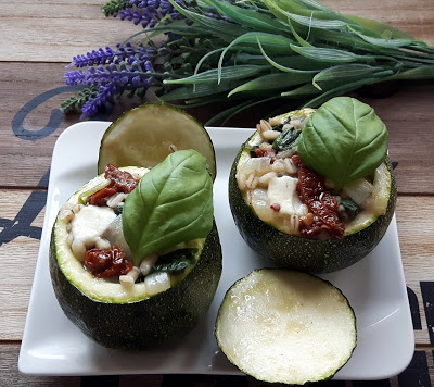 Cukinia na sposób wegetariański…faszerowana pęczakiem z dodatkiem szpinaku, pomidorów suszonych oraz mozzarelli. Pyszny obiad, który przyrządzisz w kilka chwil, a resztę zrobi piekarnik 😉 Danie oprócz tego, że wspaniale smakuje to świetnie się też prezentuje, więc możemy go zaserwować gościom, a na pewno się nie powstydzimy.