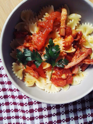 Tydzień bez makaronu to tydzień stracony. Zdecydowanie to moja dewiza. Uwielbiam wszystko co ma w sobie makaron. Szczególnie w poniedziałki. Bo po weekendzie sił jakby mniej i energii do przygotowania obiadu również nie za dużo. Bardzo leniwa, domowa, burzowo-deszczowa sobota, zupełnie wybiła mnie z rytmu. Naprawdę dochodzę do wniosku, że
