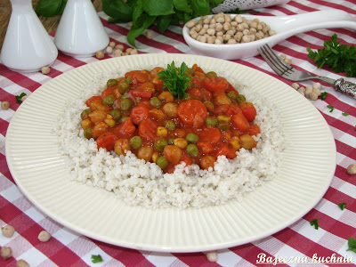 Składniki:1 opakowanie mrożonych warzyw z marchewką, groszkiem i kukurydzą