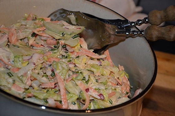 Bardzo chrupiąca, przepyszna surówka z sałaty lodowej, marchewki, ogórka i rzodkiewki. Jest…