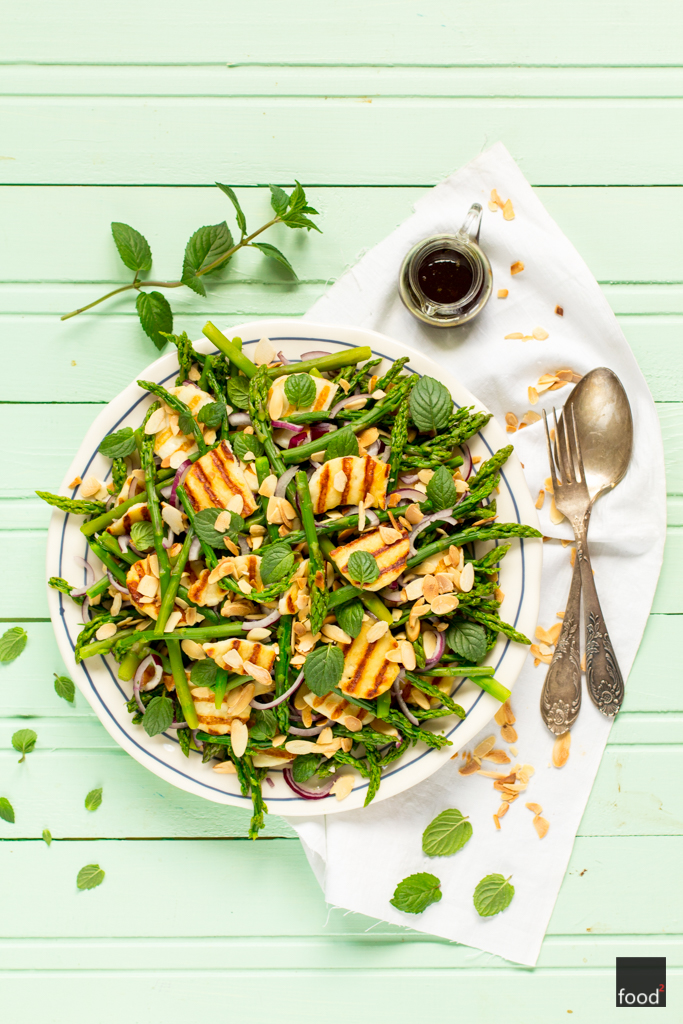 Jeżeli tak jak ja uwielbiasz szparagi w najprostszej postaci, to koniecznie musisz wypróbować ten przepis. Przypieczony na grillu i jeszcze ciągnący się ser halloumi, orzeźwiająca mięta, chrupiące migdały, lekko ostra i pięknie konstruująca czerwona cebulka oraz mnóstwo zielonych szparagów. To zdecydowanie przepyszna kombinacja. Do sałatki możesz dorzucić również pokrojone