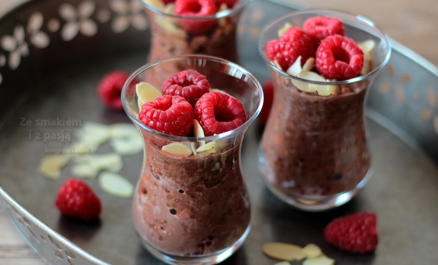5 łyżek płatków owsianych1 szklanka mleka krowiego lub napoju roślinnego1 łyżeczka ziarenek chia1 łyżka kakao2 łyżeczki miodu lub ksylitoluok 125