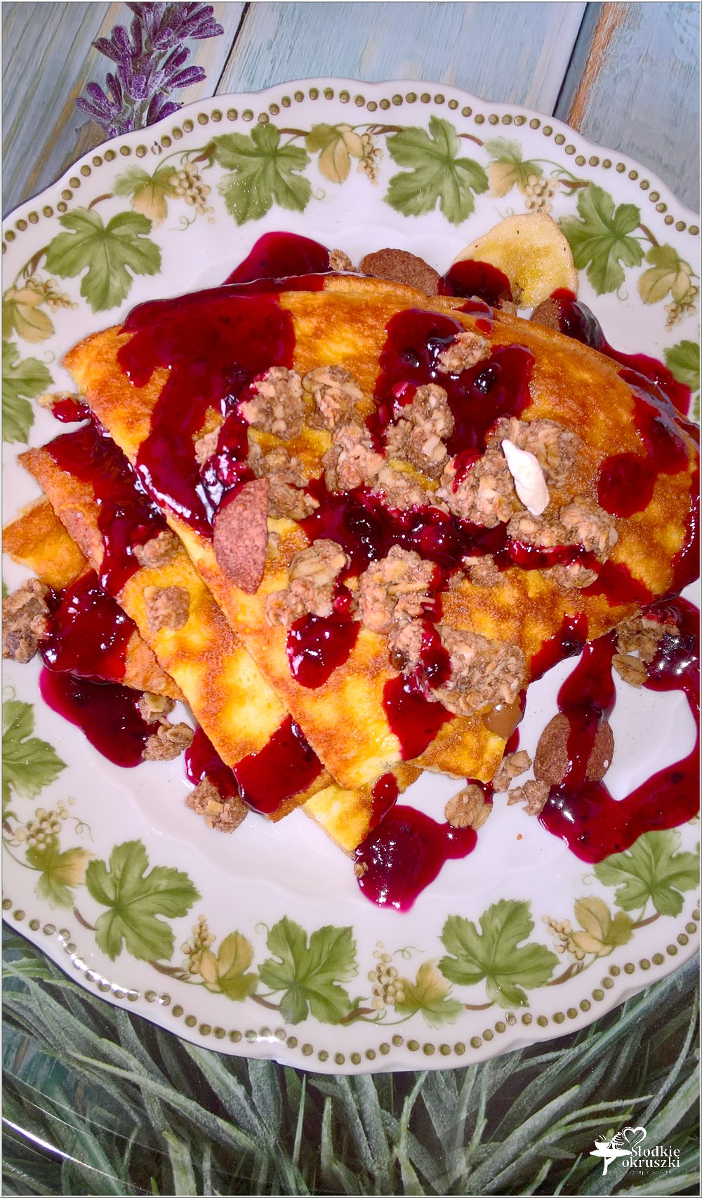 Dziś zapraszam Was na pyszny puszysty omlet z musli w jagodowym sosie. Uwielbiam połączenie najróżniejszych placków, placuszków i omletów z chrupiącymi dodatkami i nutą słodyczy. Dziś u mnie tym słodkim akcentem jest przepyszny jagodowy sos Idealny do najróżniejszych deserów i śniadań na słodko. Miłego i smacznego dnia