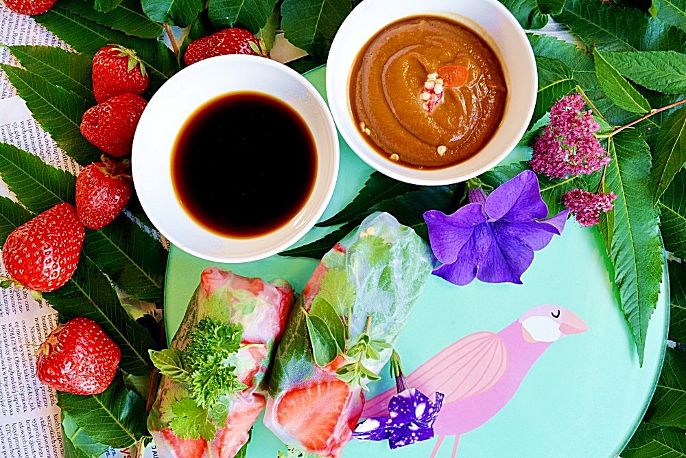 Dziś u mnie truskawki na wytrawnie, w postaci sajgonek (spring rolls). Dość znane połączenie mango z warzywami zastąpiłam naszymi, polskimi truskawkami i świeżymi ziołami. Lekka, idealna przekąska na letnie dni. Aromatyczne, pełne smaków i rozmaitości spring rolls to znakomity pomysł do zabrania ze sobą do szkoły czy pracy. W połączeniu