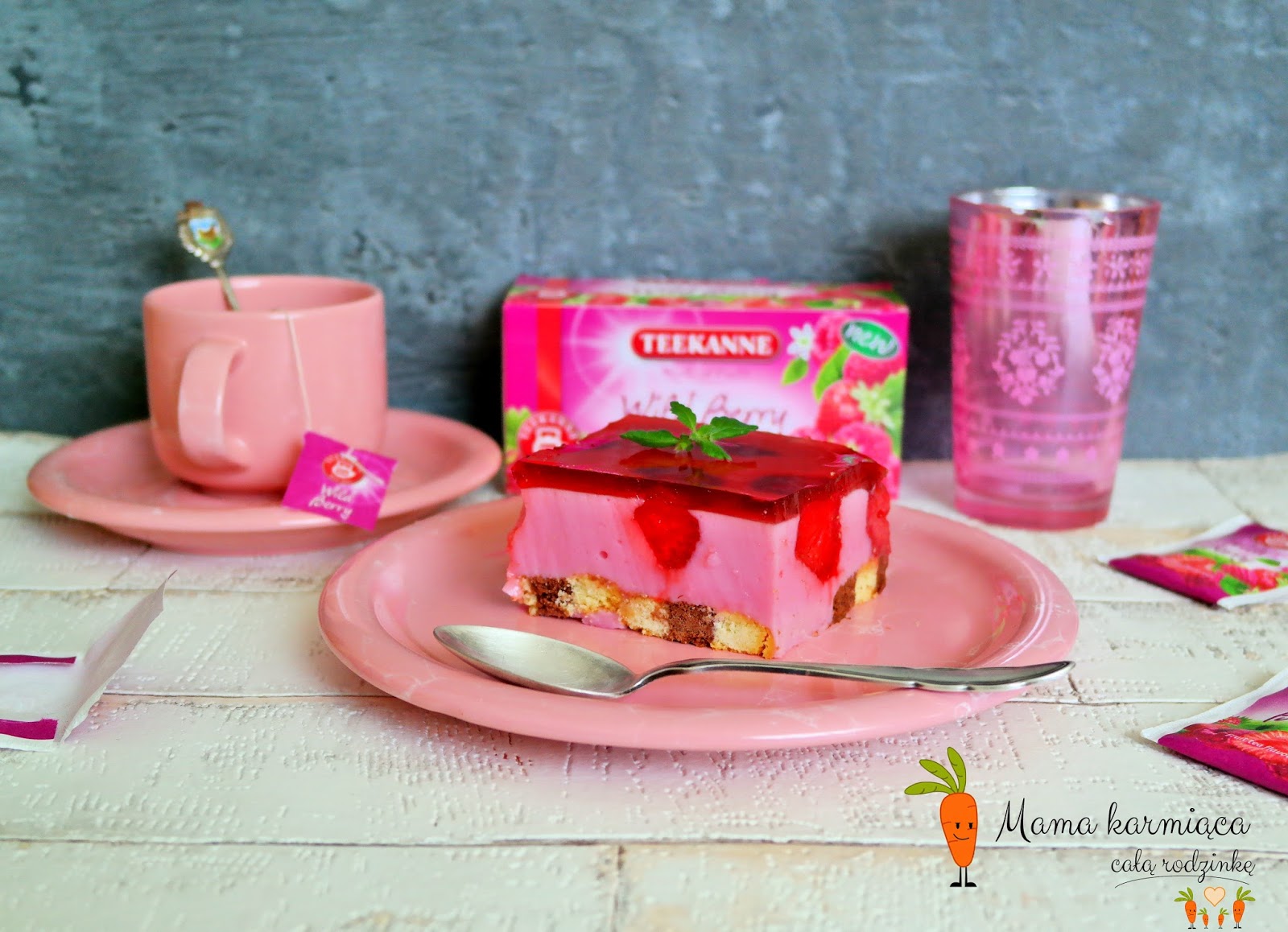 Lekkie ciasto, które podczas teraźniejszych upałów będzie niemalże zbawieniem. Korzystajcie z truskawek, które obecnie przeżywają swoją świetność. To najlepszy czas, żeby kupić je soczyste, pyszne, słodkie i cudownie czerwone. Mamy także dzisiaj pierwszy dzień lata, więc trzeba to jakoś uczcić. 🙂 Całość zwieńcza cienka warstwa galaretki herbacianej.