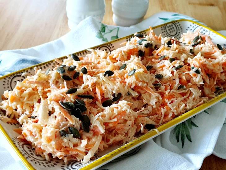 Surówka z selera, jabłka i marchewki.