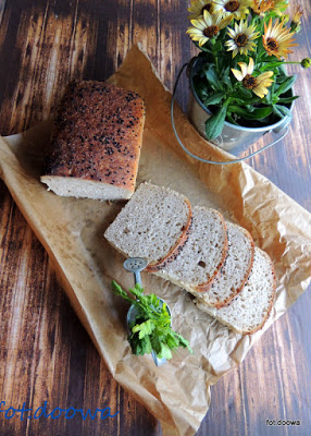 Bezglutenowy chleb z rodzynkami (Damhert) podany z kokosowym serkiem, poziomkami, jagodami, śliwką,…