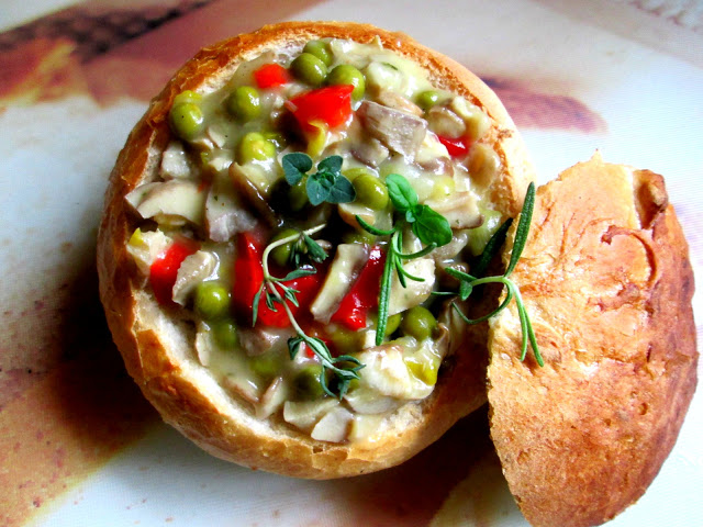 Gulasz grzybowo -warzywny w bułce