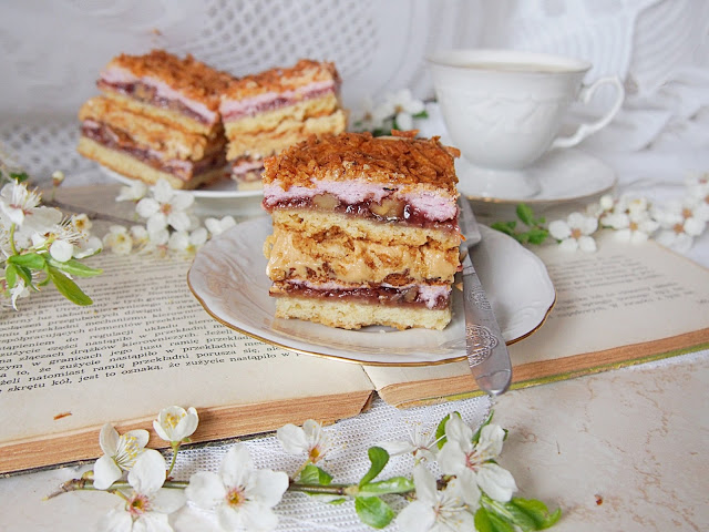 To ciasto odrobinę przypomina Panią Walewską, bo mamy tu kruche blaty, dżem…