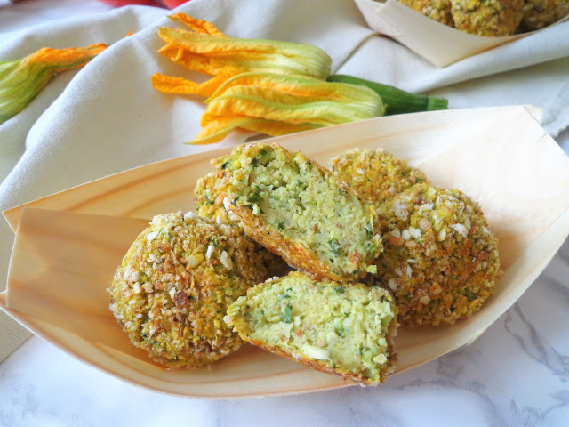 Pieczone pulpeciki z cukinii są prostą, szybką w przygotowaniu i smaczną przegryzką. Chrupiąca, rumiana i lekko chrupiąca panierka kryje kremowe nadzienie, które dzięki dodatkowi ricotty i świeżych ziół staje się bardziej delikatne w smaku i niezwykle aromatyczne. Polecam serdecznie i życzę smacznego 🙂